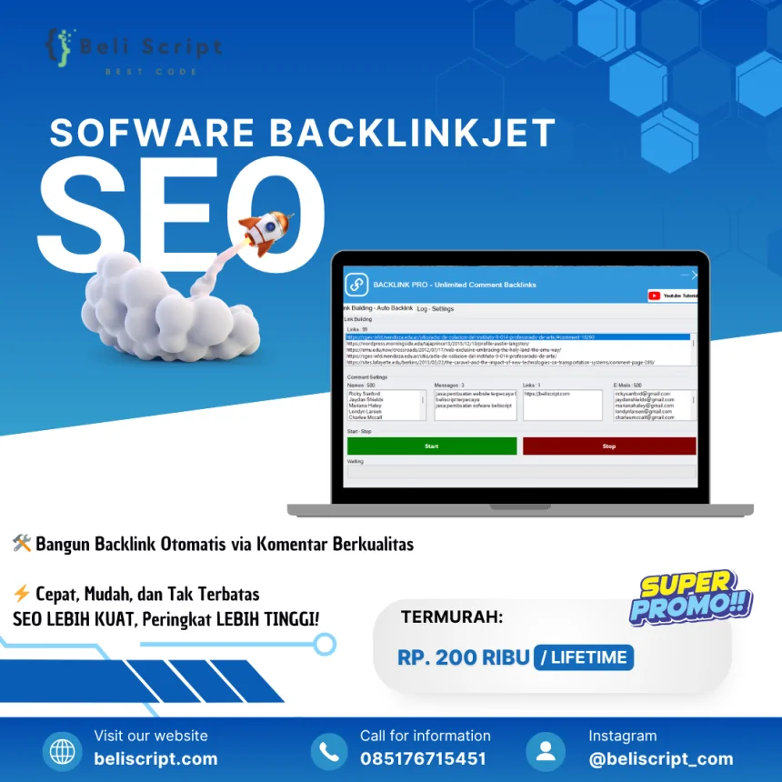 Mimpikan website Anda bertengger di puncak hasil pencarian Google? Wujudkan sekarang dengan BacklinkJet PRO – software backlink otomatis revolusioner yang akan membangun ribuan backlink berkualitas tinggi via komentar hanya dengan sekali klik!