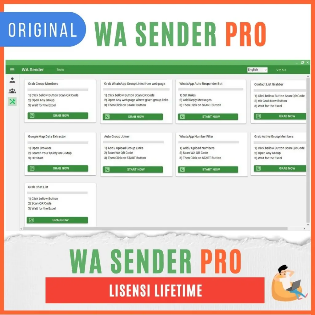 Tingkatkan strategi pemasaran dan komunikasi bisnis Anda secara drastis dengan WhatsApp Sender Otomatis ini! Dapatkan kemampuan untuk mengirimkan pesan massal ke ribuan kontak sekaligus, serta mengumpulkan database grup WhatsApp dari internet untuk leads yang tak terbatas. Dibandingkan dengan botmaster lainnya, software ini hadir dengan fitur yang jauh lebih lengkap (lihat slide ke-3 pada produk terkait!).