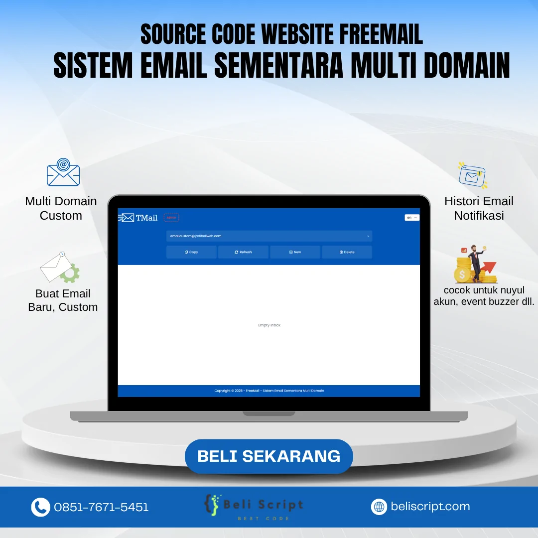 Hadirkan solusi email sekali pakai (temporary email) yang powerful dan fleksibel dengan Source Code Layanan Email Sementara Profesional ini! Dirancang khusus untuk kebutuhan testing akun, verifikasi, atau event khusus, platform ini memungkinkan Anda menjalankan layanan email sementara yang cepat, ringan, dan sepenuhnya bisa dikustomisasi, lengkap dengan dukungan sistem multi-domain!